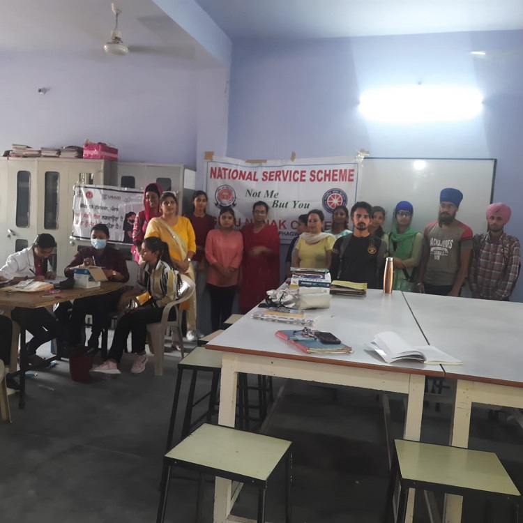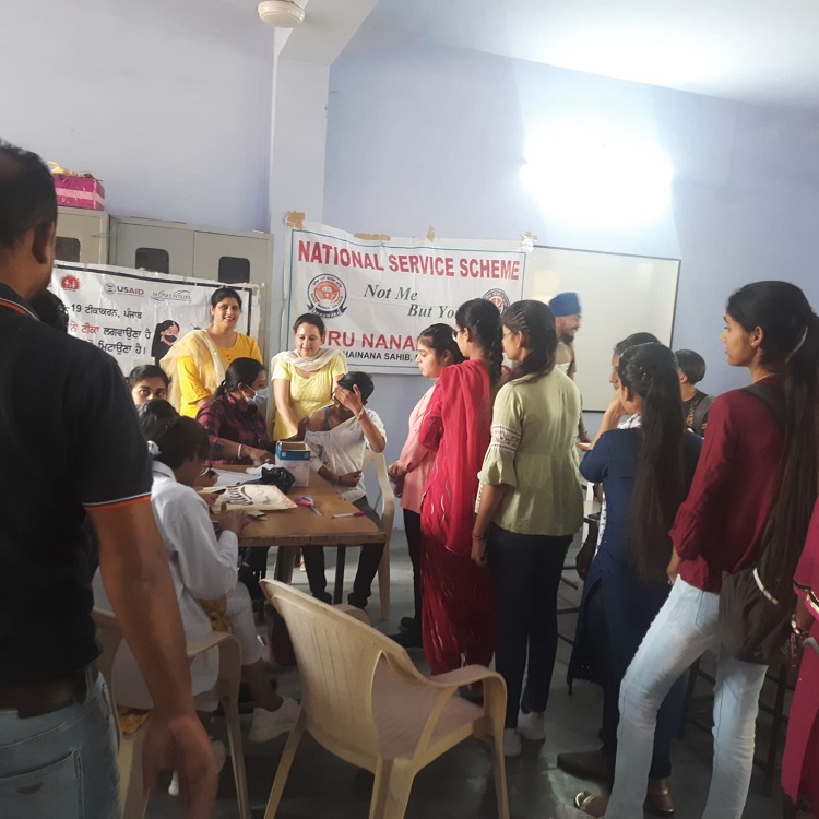 NSS unit of Guru Nanak College, Sukhchainana Sahib, Phagwara organised a COVID-19 Vaccination Camp with the help of Civil Hospital and SARD NGO under the able guidance of Principal Dr. Gurdev Singh Randhawa. Worthy President College Managing Committee S. Jatinderpal Singh Palahi appreciated the efforts made by College NSS unit.